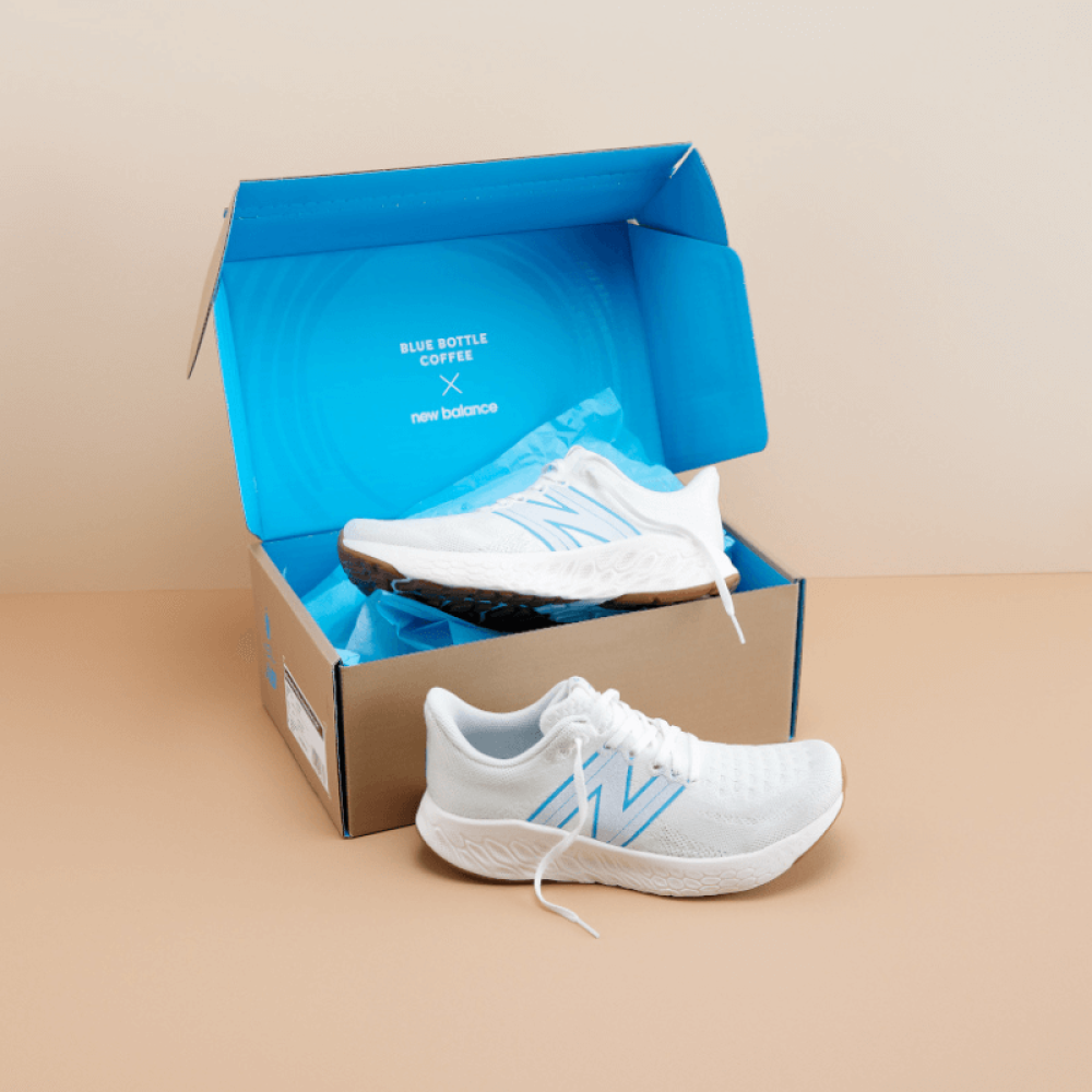 حذاء New Balance Fresh Foam X 1080v12 هو إصدار خاص يأتي نتيجة تعاون فريد من نوعه مع شركة القهوة Blue Bottle Coffee، حيث يجمع بين الأناقة العصرية والأداء الاستثنائي. يتميز الحذاء بلون أبيض كريمي ناعم، مع خطوط زرقاء فاتحة تعبر عن هوية Blue Bottle Coffee.